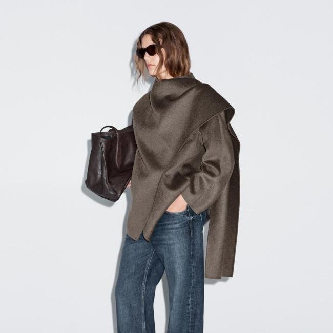 Americana de lana con bufanda, 199 euros. Si alguna vez alguien habló de lujo silencioso, obviamente se refería a prendas como esta. Porque además solo necesitas un pantalón negro o un vaquero debajo para un look de diez. Es un acierto asegurado.