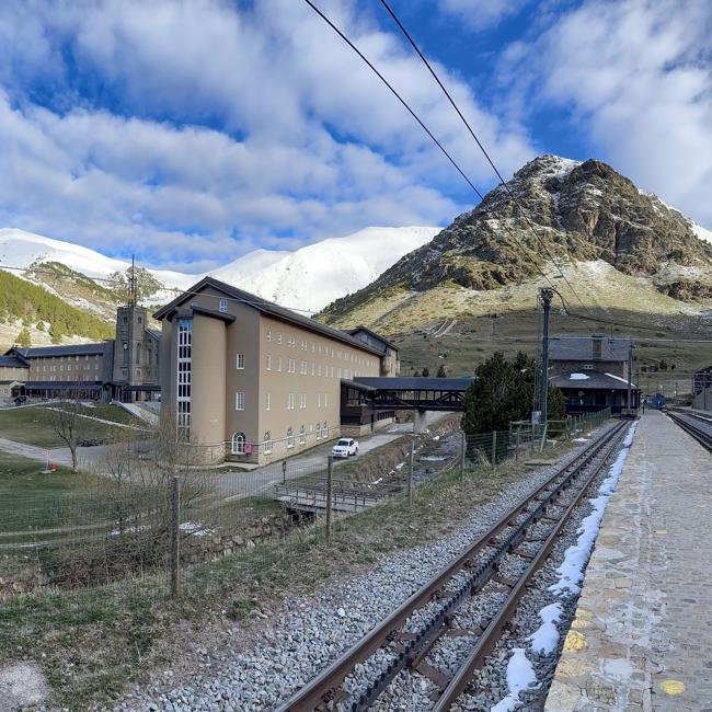 La primera particularidad del Vall de Núria la encontramos en el momento de acceder al valle. Y es que para llegar hasta aquí el coche no es una opción: solo se puede llegar en Tren Cremallera. El cremallera presume de ofrecer al turista unas vistas únicas del entorno desde mucho antes de llegar. En un trayecto de unos 12,5 kilómetros con un desnivel de 1.000 metros, este tren es el aperitivo perfecto de la experiencia que supone la estancia en este lugar.