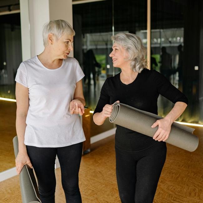 Mujeres haciendo ejercicio con esterillas.