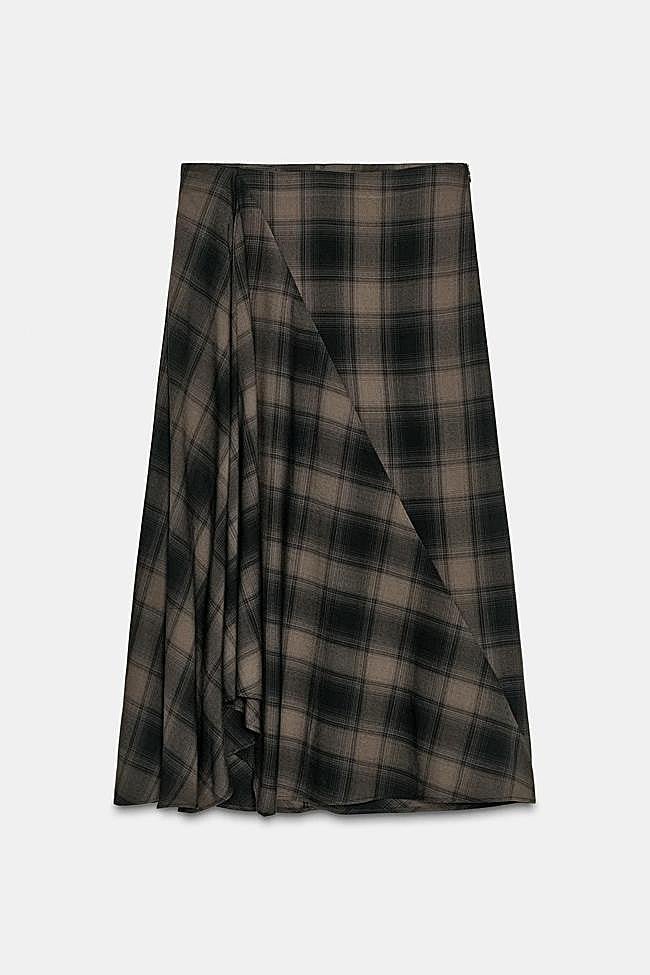 Por último, hemos encontrado esta falda que tiene descuentazo. Es un modelo capa con un estampado de cuadros en tonos marrones y verdes que se va a convertir en tu favorita. Precio: rebajada a 39,99 euros.