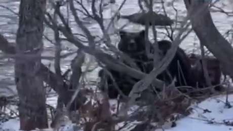 Con permiso: mamá osa y sus crías se comen el alimento obtenido por un pescador en el río Kayuk, en Kamchatka, Rusia. El hombre contó que los animales se le acercaron sigilosamente por detrás y que, pese a sus gritos para ahuyentarlos, tuvo que retirarse a una distancia segura. pic.twitter.com/TLgE33kvDj