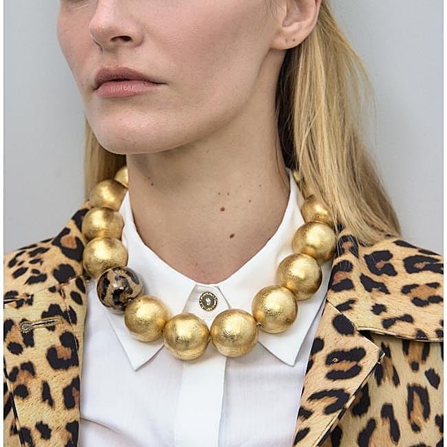 Collar de cuentas maxi doradas con un toque de sofisticación. Incluye una cuenta con detalle de print animal para un estilo único y un cierre ajustable para mayor comodidad. Precio: 69,95 euros.