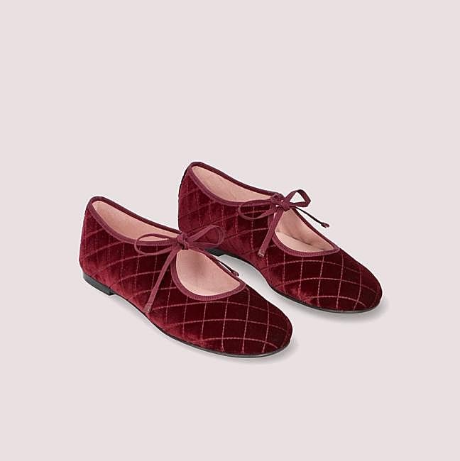Bailarina Georgia de Pretty Ballerinas confeccionada en terciopelo acolchado en un tendencia color burdeos. Tiene un lazo en el empeine, suela de goma, plantilla de piel y forro de tela. Precio: 199 euros.