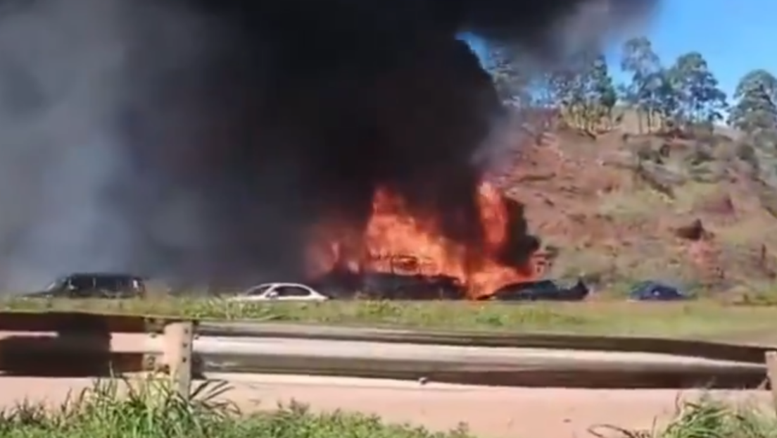 Autobús turístico se transforma en una bola de fuego en plena marcha en BrasilLas imágenes de un autobús envuelto en llamas con personas a bordo, que avanza a toda velocidad por la autopista antes de salir de ella, están circulando en las redes sociales brasileñas.De acuerdo… pic.twitter.com/SOnP0oUTTL