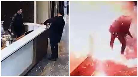 💥Paquete explota en la cara de un hombre cuando intenta abrirlo En la Red se ha publicado un video del instante en que un paquete de carga, que contenía fuegos artificiales, estalló con la fuerza de una bomba en un conjunto habitacional en Estambul cuando un hombre lo intentó… pic.twitter.com/QXPxVliqMV