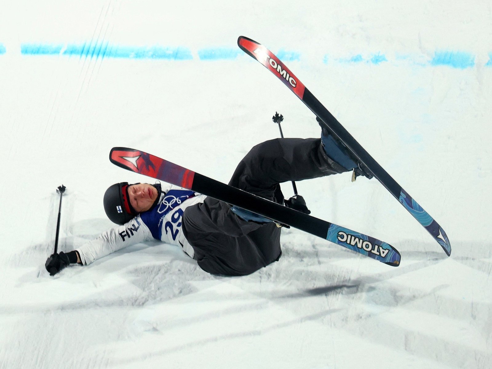 Lajunen descendió por la rampa de 40 metros, perdió el control en el aire, cuando realizaba la rotación final del truco, y no logró estabilizarse a tiempo para el aterrizaje, por lo que cayó violentamente sobre la nieve compactada del Snow Park de Livigno. Se golpeó la espalda y la cabeza y tras el impacto seco, pareció quedar inconsciente y su cuerpo fue deslizándose, boca abajo, unos metros más en la pista.