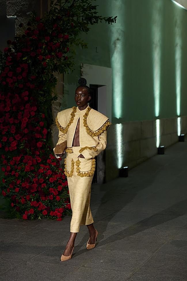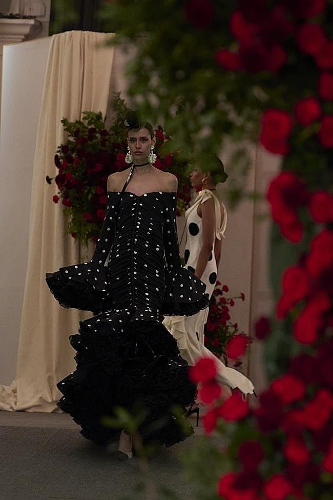 Presente en el imponente desfile inaugural de OMODA Madrid es Moda en la Plaza de España de la capital, Juana Martín ha sido la gran protagonista de esta edición de la pasarela: su desfile llenó de duende, de embrujo y de pasión el Museo de la Academia de Bellas Artes de San Fernando, donde las flores se convierten en metáfora central. Martín habla de ellas como símbolos de fugacidad y permanencia a un mismo tiempo: «España empieza a nacer cada primavera, cuando todos los sitios por los que te muevas, tienen esa luz y ese color tan atractivos». En su colección Herencia, esa primavera, las ferias, los jardines y la luz del sur aparecen reinterpretados en clave flamenca contemporánea. «Las flores anuncian la primavera, pero a la vez son algo tan efímero… Ahí es donde está su esencia, lo que las hace eternas. Como el flamenco, que será eterno por siempre».
