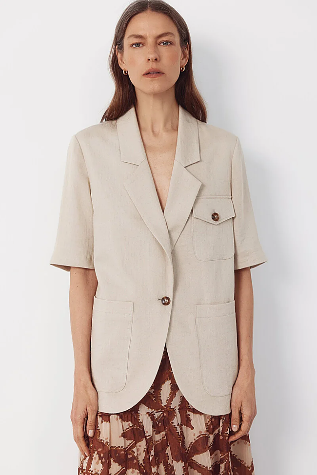 Es aquí donde entran en juego las blazers de manga corta, una pieza clave esta temporada que permite mantener la elegancia sin renunciar a la comodidad. Puedes combinarlas tanto con vestidos como con pantalones para conseguir ese punto sofisticado en una versión mucho más fresca, que además deja los brazos al descubierto. Y estas son las opciones del mercado que más nos gustan.
