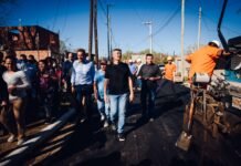 Junto a vecinos y vecinas, Passerini recorrió las obras de pavimentación en El Dorado...