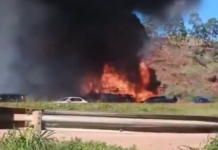 Autobús turístico se transforma en una bola de fuego en plena marcha en BrasilLas imágenes de un autobús envuelto en llamas con personas a...