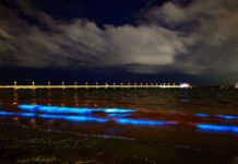 Un fenómeno natural hizo resplandecer durante el fin de semana el mar de Melbourne, Australia, por lo que quienes estaban en la playa de...